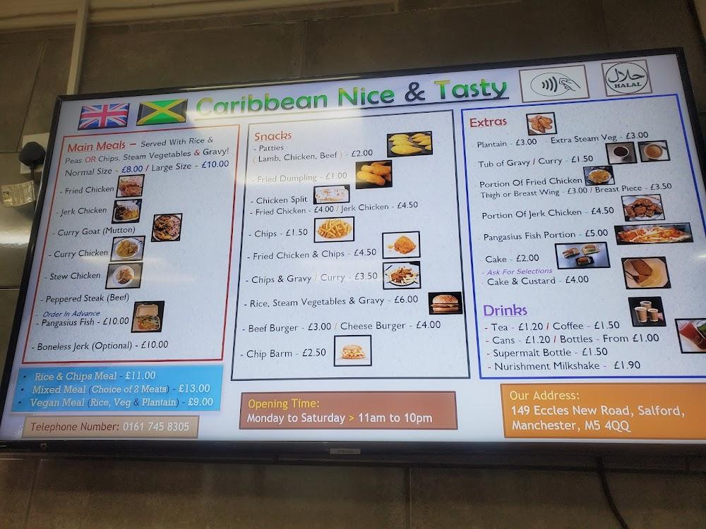 Caribbean Nice & Tasty sits on the bustling Eccles New Road, making it easily accessible for both locals and visitors exploring Salford. The atmosphere is casual and inviting, perfect for anyone looking to enjoy authentic Caribbean cuisine without the fuss. The restaurant is a popular choice for a quick bite during lunch or a more relaxed dinner with friends. With the capacity to accommodate large groups, it has become a favorite for community gatherings and special occasions. Additionally, it's tourist-friendly, offering visitors a taste of real island food. The interior boasts a cheerful décor that echoes the vibrant spirit of the Caribbean, with music that often has customers tapping their feet. With convenient amenities like takeaway and delivery services, and a warm atmosphere ideal for solo diners, Caribbean Nice & Tasty effortlessly caters to various dining preferences. Reservations are accepted, ensuring your spot during busy hours, particularly on Fridays when the restaurant sees its highest capacity.